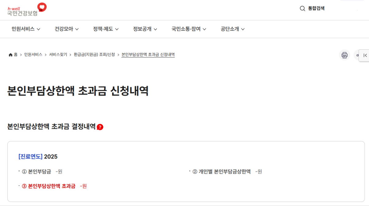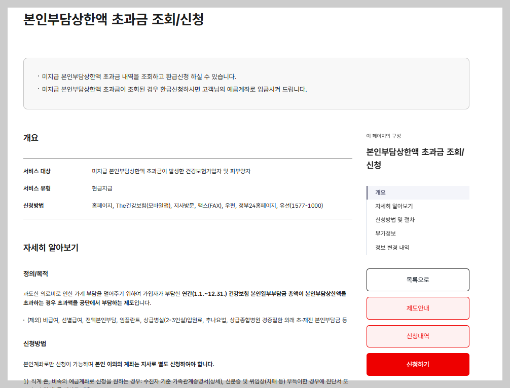 - “본인부담금 환급금 조회 절차”