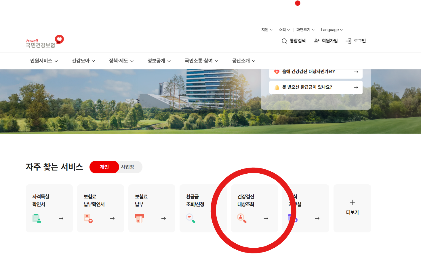 - 국민건강보험공단 홈페이지 → 검진 대상 조회