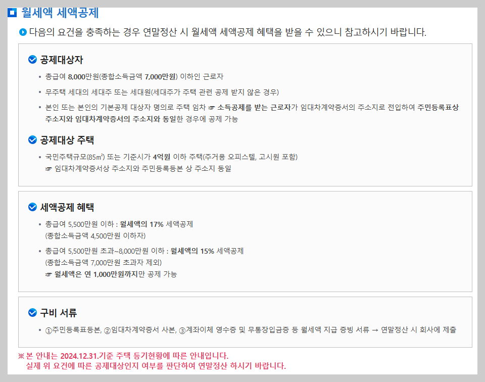 월세 1~2개월치 상당 금액을 환급받을 수 있어 절세 효과가 매우 큽니다.
