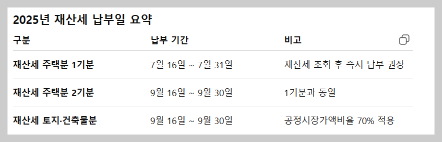 2025년 재산세 납부일 정리