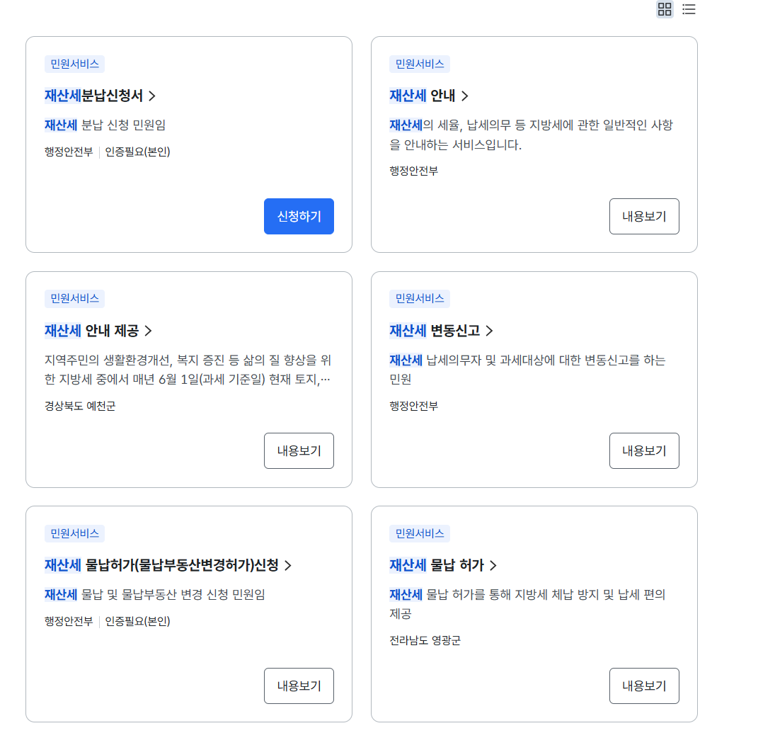 정부24에서는 전자 고지서를 중심으로 재산세 조회가 제공됩니다.