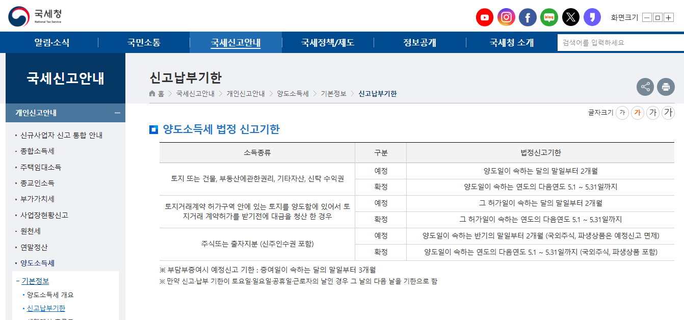 중요한 점은 국세청이 자동으로 부과하지 않고, 납세자가 직접 신고해야 한다는 점입니다. 따라서 양도소득세신고기한을 지키지 못하면 가산세가 발생할 수 있습니다.