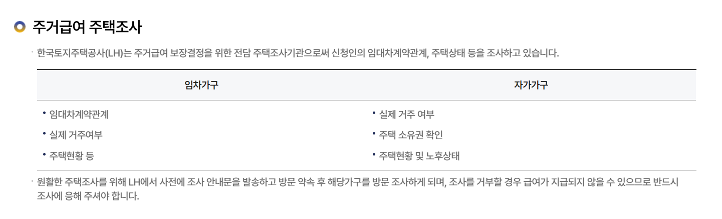 신청 후에는 소득·재산 조사와 주거 실태 조사가 진행된다.