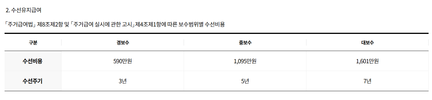▷ 수선유지급여: 주택 상태에 따라 차등