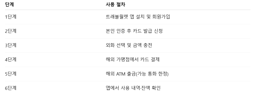 트래블월렛 카드 사용법은 구조를 이해하면 복잡하지 않습니다.