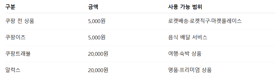쿠팡이 제공하는 5만 원 상당의 보상금은 아래와 같이 구성됩니다.