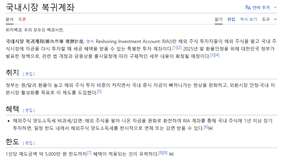 RIA 계좌는 Reshoring Investment Account의 약자로, 개인투자자가 해외주식을 정리해 국내시장으로 자금을 되돌릴 때 세 부담을 줄여주는 전용 계좌입니다.