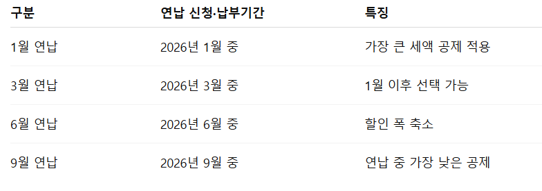 연납을 선택하면 남은 기간에 대한 세액 일부가 공제되어 정기 납부보다 부담이 줄어듭니다.