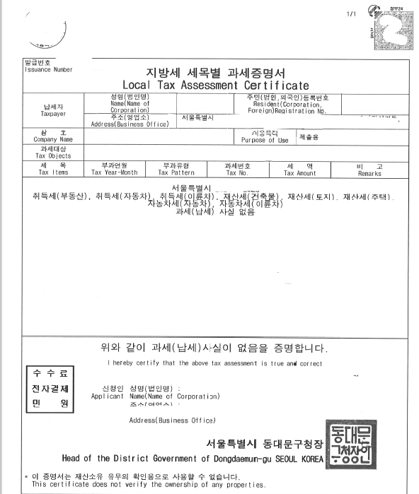- 법원이나 공공기관에서 재산 관련 소송이나 분쟁 시 납세 사실을 증명