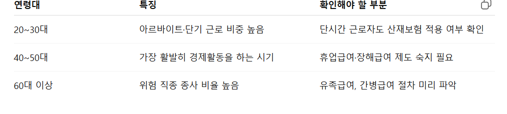 - 근로자 전원 가입 원칙: 정규직, 비정규직, 일용직, 아르바이트 등 모두 대상